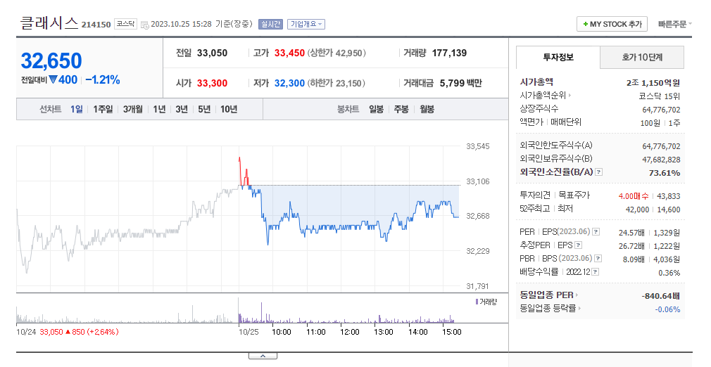 클래시스 현재 주가는 33,050원이며 전일 대비 -6.24원의 모습을 보이고 있습니다. 클래시스의 주주현황을 살펴보면 BCPE Centur Investments, LP(외 2인)이 지분 73.77%를 소유하고 있습니다. 클래시스는 의료 장비 및 서비스 기업으로 장중 기준으로 주가는 33,050원 입니다. 시가 총액은 2조1214억 원이며 발행 주식수는 73.61주 입니다. 외국인 보유 비중은 204,423% 이며 장중 거래량은 64,776,702를 기록했습니다. 매출액은 849억 원, 영업이익은 689억 원을 달성했습니다. EPS는 1,222원이며 클래시스 주식 배당수익률은 21,409% 입니다.
