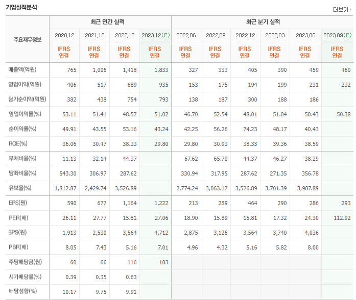 -2023년 6월 전년동기 대비 연결기준 매출액은 24.7% 증가, 영업이익은 34.6% 증가, 당기순이익은 40.2% 증가. 매출이 전년 동기 대비 급증하며 각종 비용이 상승했음에도 영업이익이 증가함. 시장 수요에 대응하기 위해 생산인력 채용 증가를 통한 생산능력을 확대, 미용의료기기 시장의 대중화를 확산시키기 위해 다양한 기술 기반의 신제품 개발 및 지속적인 제품 업그레이드 등의 노력 중임.