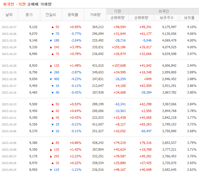 따라서 개인 투자자는 기관이나 외국인 세력을 따르며, 세력이 약해도 투자를 통해 이익을 얻는 것이 가능합니다. 최근에 외국인보다 기관 투자자를 따르는 경향이 더 큰데, 외국인의 매수가 종종 불확실하고 개인의 단기 거래가 기관과 유사하기 때문입니다.