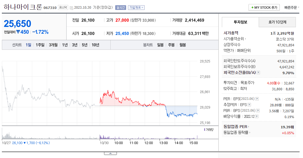 하나마이크론 가치 분석