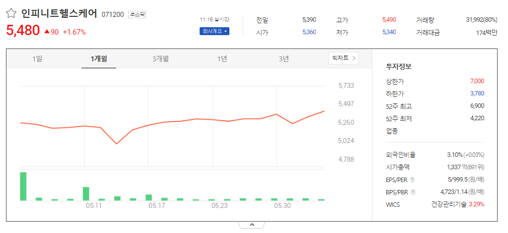 인피니트헬스케어 주가 전망 상태 시장 흐름 분석