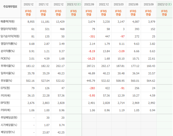 -2023년 6월 전년동기 대비 연결기준 매출액은 10.9% 증가, 영업이익은 19.7% 증가, 당기순이익 흑자전환. 국내 닭고기 시장 리더로서 보고서 기준일 현재 약 92,096천수를 생산하여 약 20.0%의 시장점유율을 실현함. 동사의 제품은 시장 점유율 약 19.6%로 국내 1위를 차지하고 있지만, 현재 국내 동종업계는 30여 개 업체가 영업 중으로 그 업체 간의 경쟁심화는 동사의 수익 저해요인으로 작용할 수 있음.