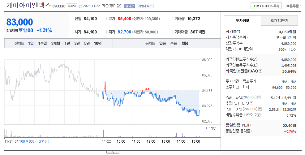 케이아이엔엑스 주가 분석