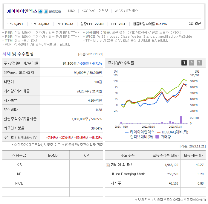 케이아이엔엑스 가치 분석