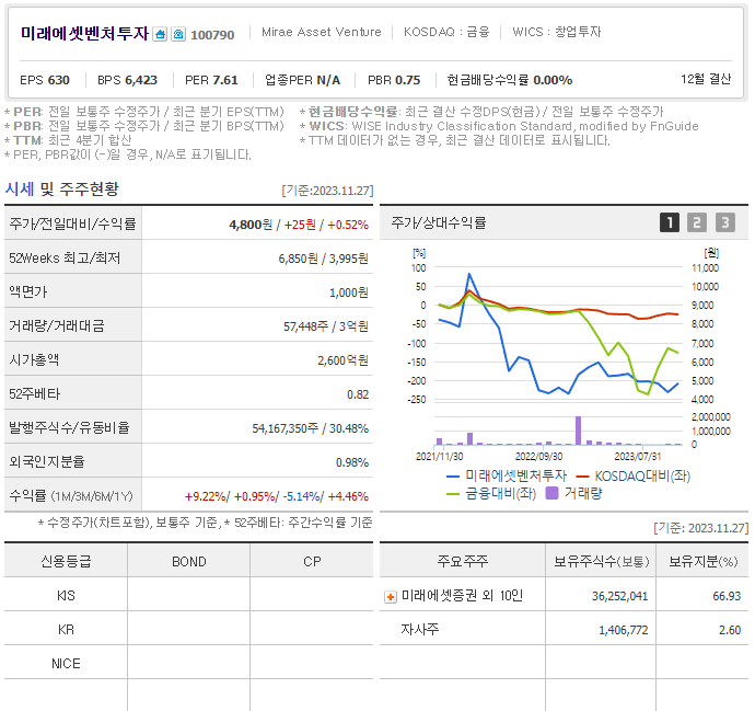 미래에셋벤처투자 주가 분석