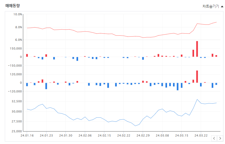 그러므로 개인 투자자는 기관이나 외국인 세력의 움직임을 따르며, 세력의 약점을 활용해 어떤 것을 매수하고 매도하여 수익을 얻습니다. 최근, 외국인보다 기관 투자자를 따르는 흐름이 강해졌으며, 외국인의 매수가 불안정하고 개인의 단기 거래가 기관과 유사한 패턴 때문입니다.