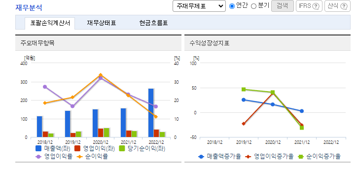 -2022년 12월 전년동기 대비 연결기준 매출액은 68.2% 증가, 영업이익은 20.6% 증가, 당기순이익은 18.5% 감소. 매출액 큰 폭 증가하면서 매출원가 또한 증가. 그 외 각종 비용 또한 크게 증가하였음에도 불구하고 매출액 상승폭이 이를 상쇄. 코로나19 팬데믹 이후로 비대면 업무 환경에 대한 관심 지속되면서 ERP 제품에 대한 관심과 수요가 증가하여 시장이 가파른 상승세.