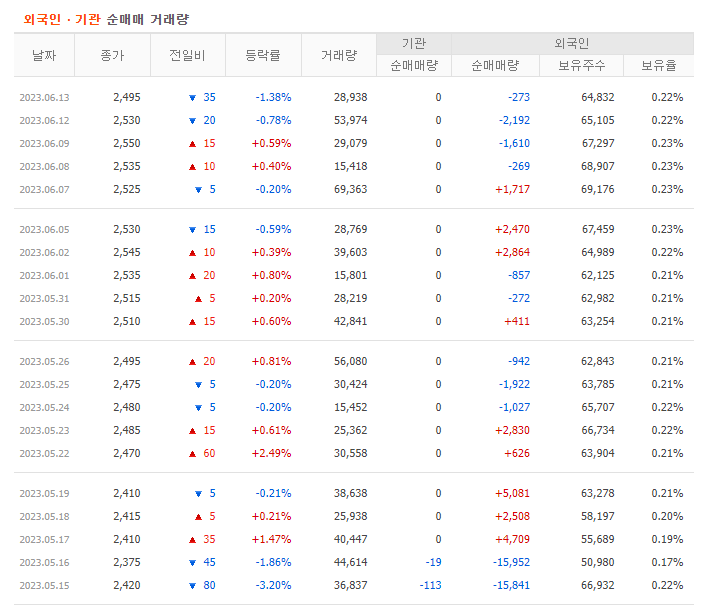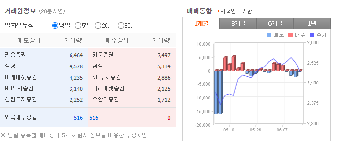 가장 좋은 경우는 기관과 외국인 모두 매수하는 쌍끌이 주식 종목을 투자하는 것입니다. 기관과 외국인이 동시에 매수한다는 것은 좋은 종목이라는 뜻입니다. 주가 전망을 알아보려면 기업 정보를 분석하고 시장 흐름에서의 위치를 찾아봐야 합니다. 거기에 기관과 외국인 매수 흐름을 확인한다면 투자 성공 확률을 올릴 수 있다고 생각합니다.