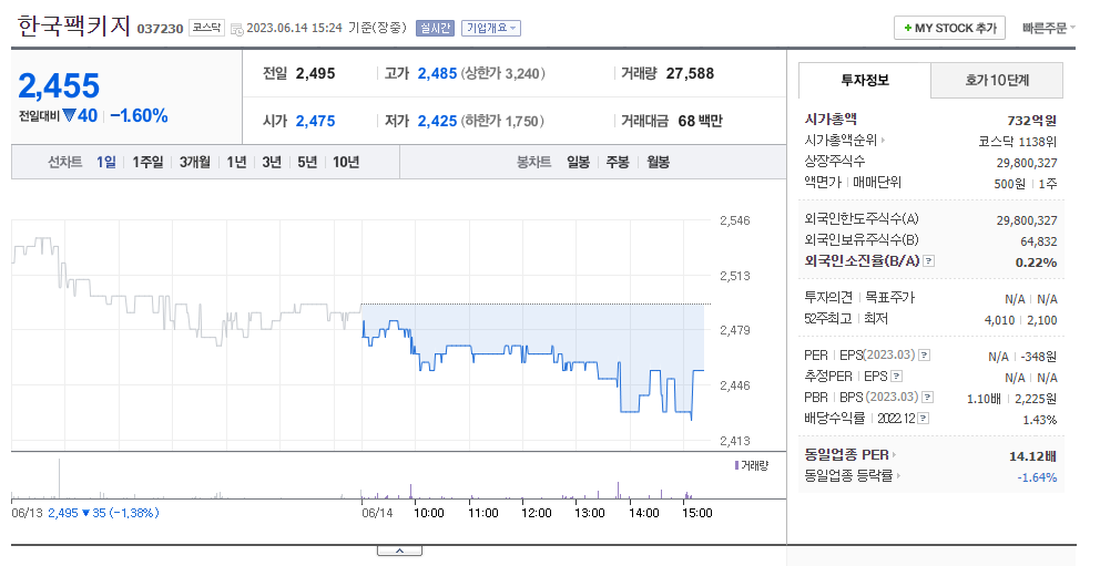 한국팩키지 주식 결론