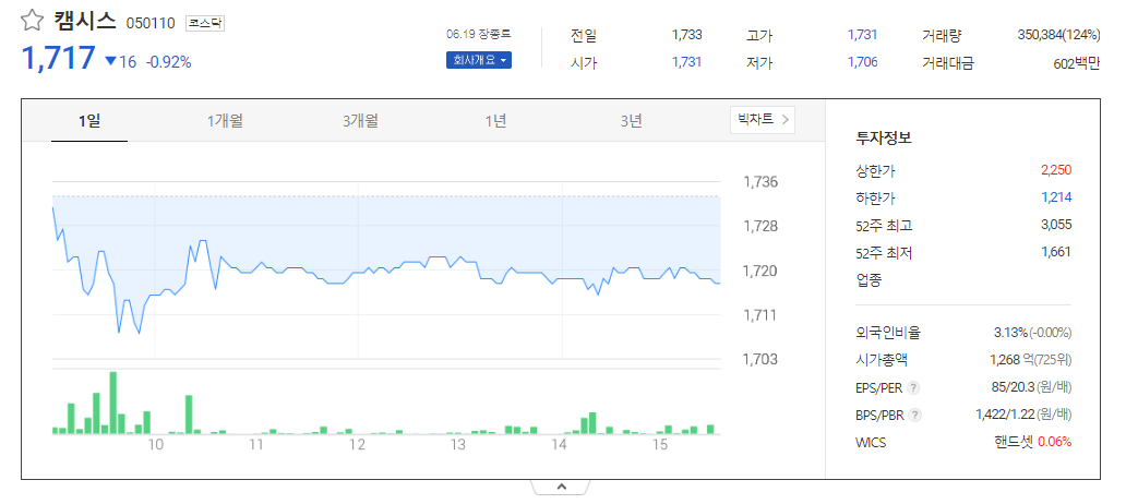 캠시스 주가 분석