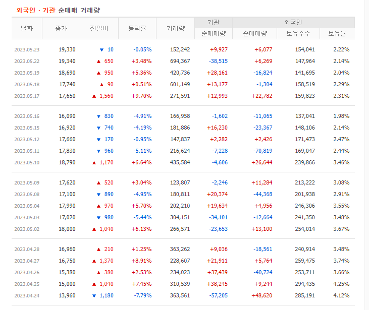 물론 가장 좋은 것은 외국인과 기관이 같이 매수하는 쌍끌이 주식을 투자하는 방법입니다. 양대 매수주체가 동시에 매수한다는 것은 좋은 종목이라는 뜻입니다. 주식의 전망을 분석하기 위해서는 기업 정보를 분석하고 주식시장에서의 위치를 찾아봐야 합니다. 거기에 기관과 외국인 매수 추세까지 살펴본다면 투자 성공 확률을 올릴 수 있다고 생각합니다.