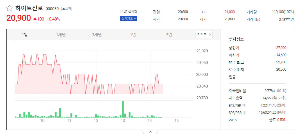 이 글에서는 하이트진로 주가 전망과 목표 주가, 기업 정보에 대해서 설명합니다. 주식을 제대로 하기에 앞서 기업 주가 정보와 재무 상태를 알아보는 것이 필요합니다. 하이트진로 주식의 주요 현황과 투자 정보를 확인하시고 지금 시장에서 위치를 파악해보겠습니다.