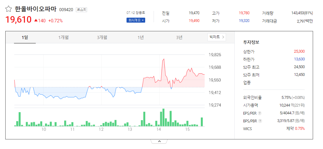 이 글에서는 한올바이오파마 주가 전망과 목표 주가, 기업 정보에 대해서 설명합니다. 주식을 사기 전에 기업의 현재 주가와 재무 상태에 관해서 살펴보는 것이 굉장히 중요합니다. 한올바이오파마 주식의 주요 현황과 투자 정보를 확인하시고 주가 흐름을 파악해보겠습니다.