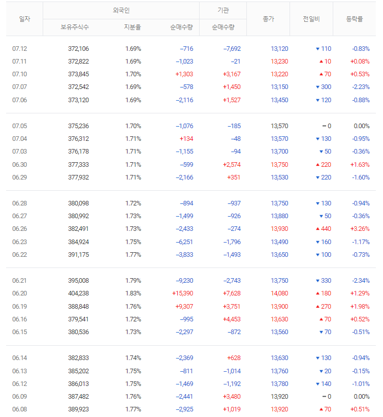 물론 가장 좋은 경우는 기관과 외국인이 같이 매수하는 쌍끌이 주식을 공략하는 것입니다. 양대 매수주체들이 동시에 매수한다는 것은 좋은 종목이라는 것을 의미합니다. 주식 주가 전망을 알아보려면 먼저 기업체를 분석하고 시장에서의 위치를 찾아봐야 합니다. 거기에 기관과 외국인 매수 흐름을 확인한다면 수익을 낼 확률을 올릴 수 있다고 생각합니다.