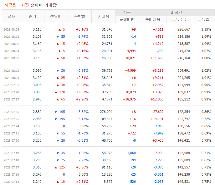 물론 가장 좋은 것은 외국인과 기관 모두 매수하는 쌍끌이 종목을 집중적으로 투자하는 것입니다. 양대 매수주체가 같이 매수한다는 뜻은 투자하기 좋다는 뜻입니다. 해당 종목의 주가 전망을 알아보기 위해서는 먼저 기업체를 분석하고 시장에서 흐름을 분석해야 합니다. 거기에 기관과 외국인 매수 추세까지 알아본다면 성공 확률을 올리는 것이 가능합니다.