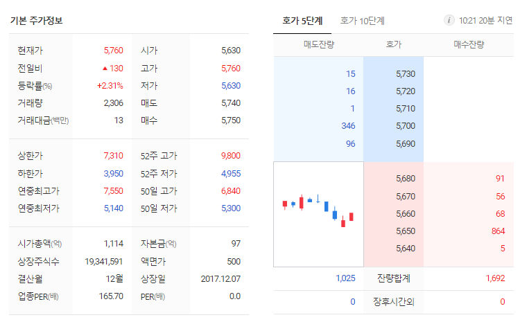 씨티케이 현재 주가는 5,790원이며 전일 대비 -170원의 모습을 보이고 있습니다. 씨티케이의 주주현황을 살펴보면 정인용(외 5인)이 지분 49.41%를 소유하고 있습니다. 씨티케이는 개인생활용품 기업으로 장중 기준으로 주가는 5,790원 입니다. 삼성전자의 시가 총액은 1124억 원이며 발행 주식수는 1.18주 입니다. 외국인 보유 비중은 25,610% 이며 장중 거래량은 19,341,591를 기록했습니다. 매출액은 694억 원, 영업이익은 -119억 원을 달성했습니다.